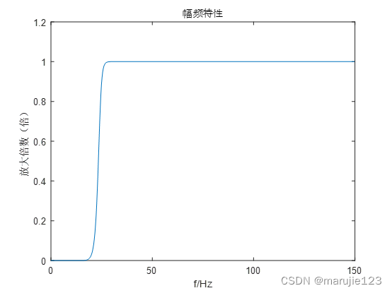 xlabel('f/Hz'),ylabel('放大倍数(倍)'),title('幅频特性');