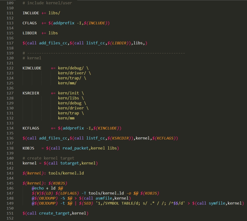 寻找libs目录下的所有具有.c, .s后缀的文件,并生成相应的.o文件,放置在obj/libs/文件夹下。