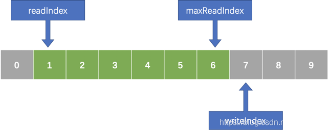 可以看到,队列是基于数组的,且包含如下三个索引: