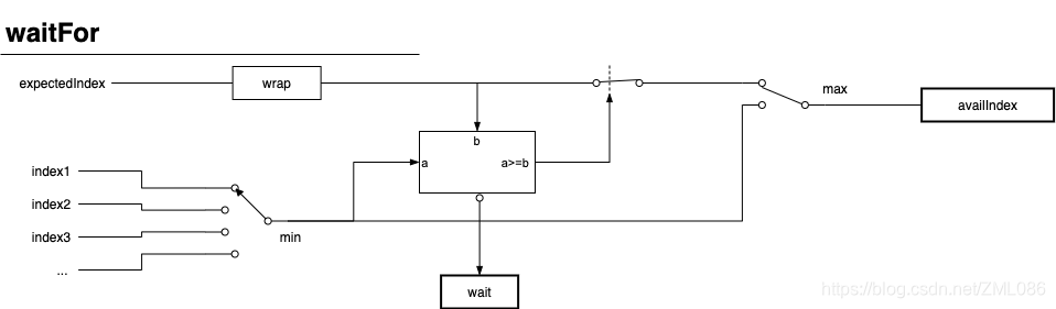 图中 index1,index2 ... 就是 Dependent Sequences 数组;wait 的具体等待方式由 waitStrategy 提供。