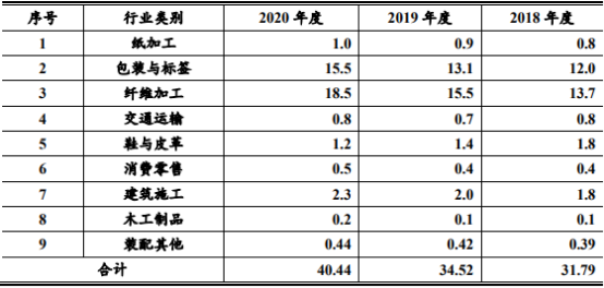 2018-2020年我国热熔压敏胶按下游应用市场细分销售情况如下: