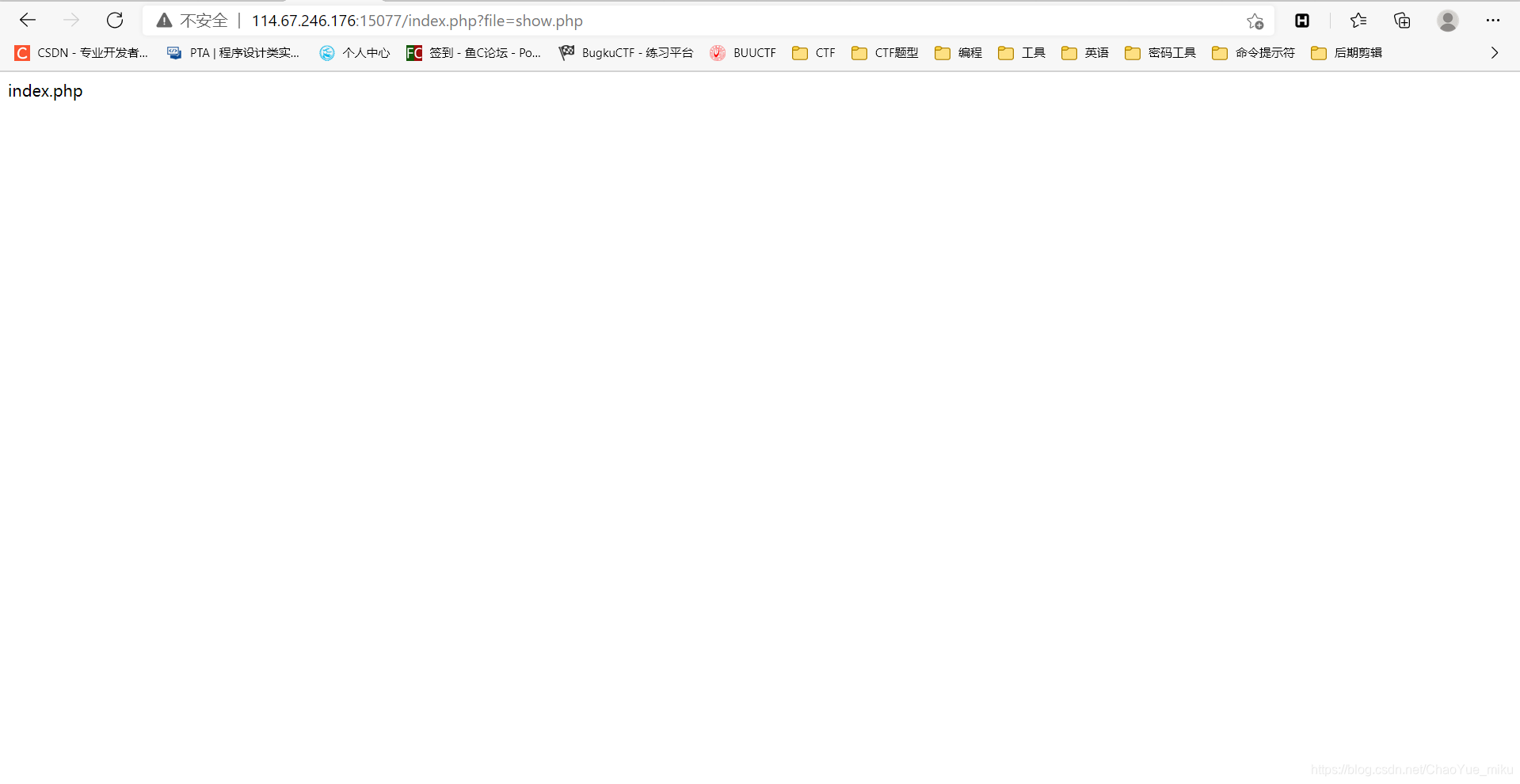 URL栏中显示:http://114.67.246.176:15077/index.php?file=show.php,可能存在文件包含漏洞