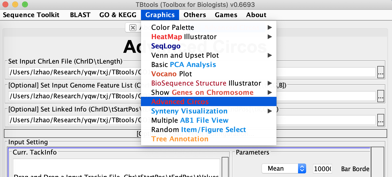我用的TBtools版本V0.6,选择Graphics->Advanced Circos