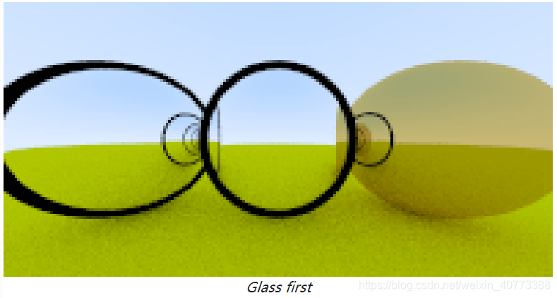 最难debug的部分是折射光线。作者先让所有的光线都变成折射光线,在这个项目中,作者尝试将两个玻璃球放在场景中(左边两个):