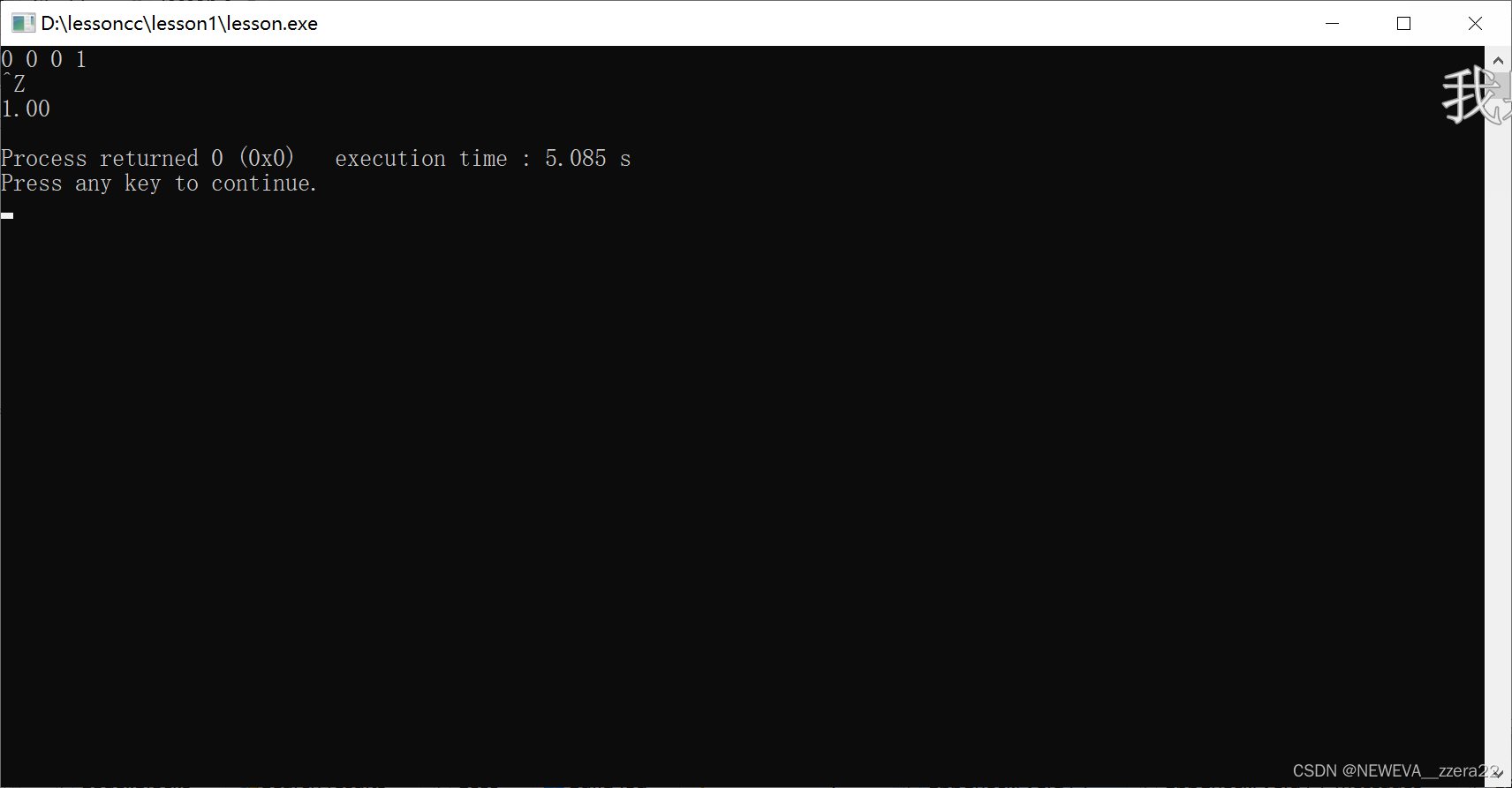 {float x1=0,y1=0,x2=0,y2=0;int count=0;float d[100];float d1=0;char ch=1;for(int i=0;i<100;i++){if( scanf("%f%f%f%f",&x1,&y1,&x2,&y2)!=EOF){d1=sqrt((x1-x2)*(x1-x2)+(y1-y2)*(y1-y2));d[i]=d1;count++;}else break;}// while(scanf("%d%d",&a,&b)!=EOF)for(int i=0;i<count;i++)printf("%.2f\n",d[i]);return 0;//今天又是没带return 0的一天