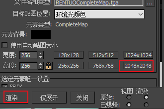 1 选择模型 渲染-》渲染到纹理 2输出-》添加 completemap 3调节贴图大小 4 渲染 导出图片