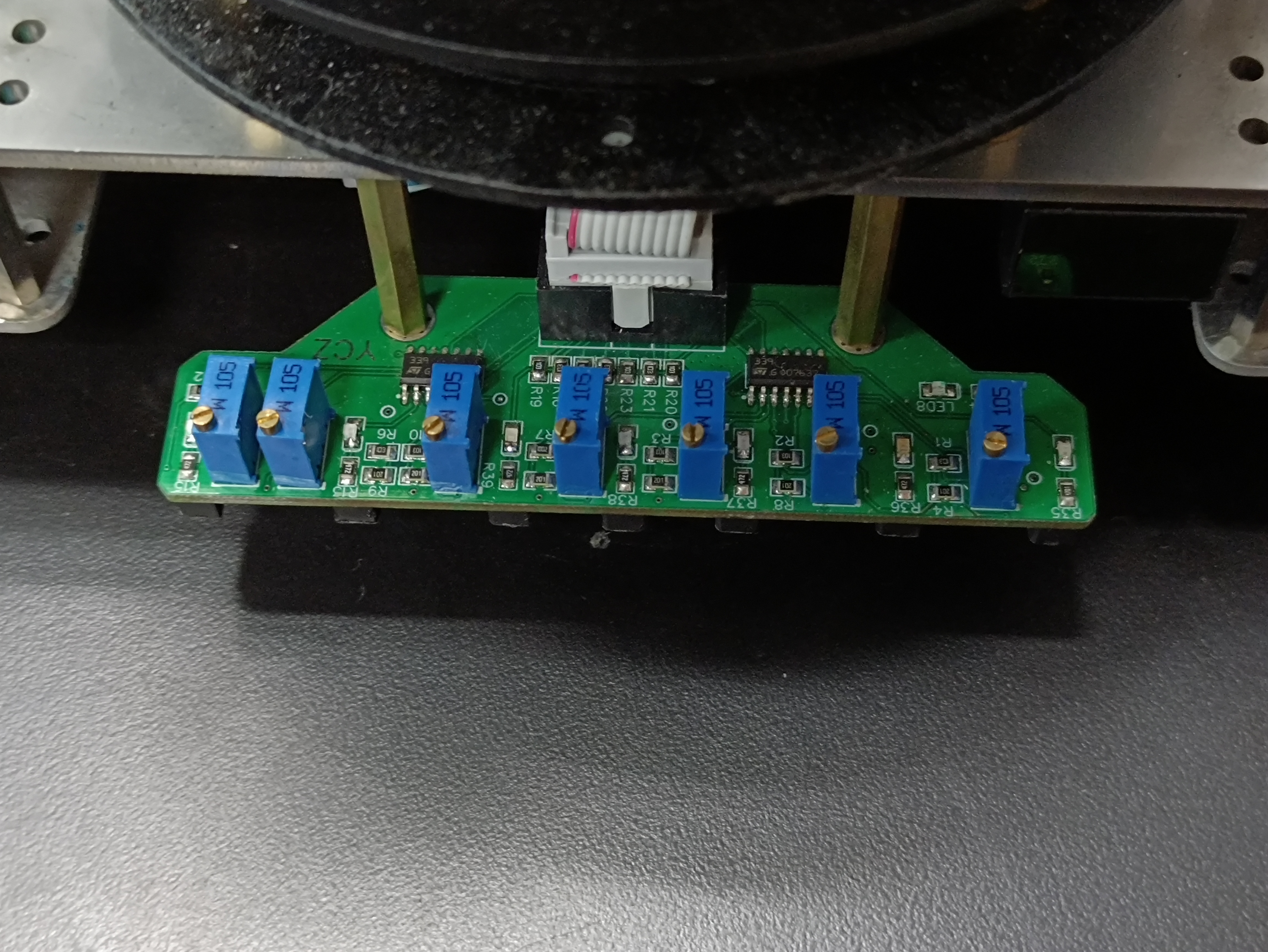 国赛的时候,我们的灰度传感器是自己制作的,好处就太明显了,自己做可以按自己需求来调整对管的间距,可以死死的卡着线。