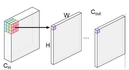 注意到两个特点,一是是一个三维矩阵,通道数始终和输入数据保持一致,所以实际是二维空间的扫描,二是