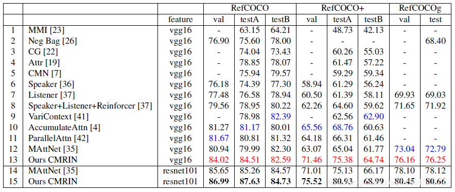 在RefCOCO、RefCOCO+和RefCOCOg上的实验结果: