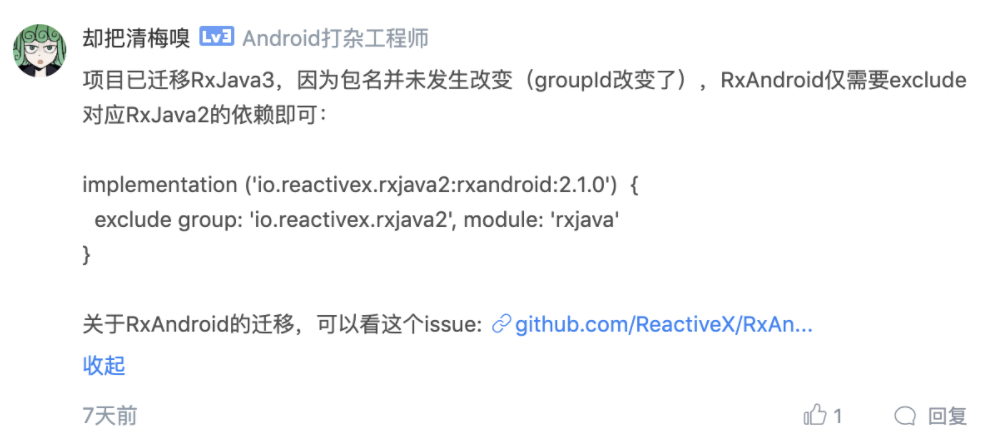 这样做之后,项目成功将RxJava迁移到了3.x版本,笔者还第一时间在 这篇文章 中进行了如下的评论: