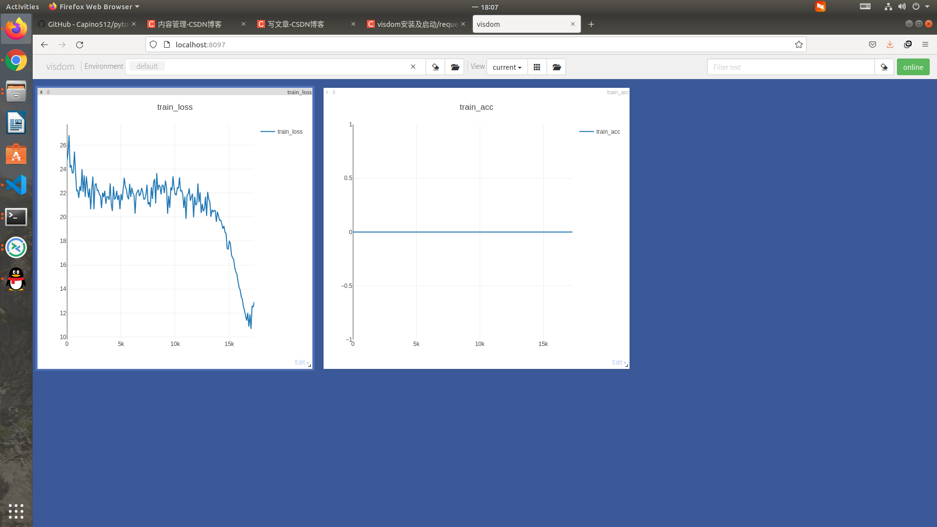 if opt.display:visualizer = Visualizer()if opt.display:visualizer.display_current_results(iters, loss.item(), name='train_loss')visualizer.display_current_results(iters, acc, name='train_acc')