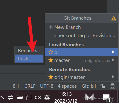 4.将分支推送至远程仓库(git push origin 分支名)