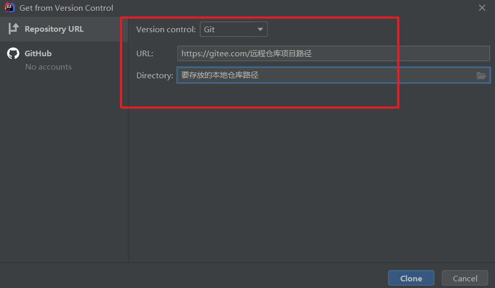 2.走远程仓库克隆(git clone 远程仓库URL):