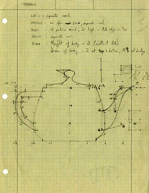 一天下午茶的时候,Newell告诉他的太太Sandra,他需要一个更有趣的3D物体。太太于是建议他把家里用的茶具数字化到计算机里。这个建议实在是太妙了!因为这个茶壶的平滑曲面特别适合图形学算法的展示。并且它的壶把手可以将阴影投射到茶壶自身,这是过去简单的3D曲面都做不到的。于是Newell开始动手,把茶壶的坐标在纸上画了出来。