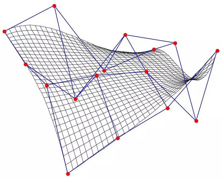 Newell对茶壶的建模可以说非常精简。总共由16个控制点和32个面组成。甚至有传言,很多图形学的研究者可以背下来这个茶壶的坐标。怎么能用这么少的点来描述一个这么复杂的三维图形呢?这是因为这16个点并不是茶壶身上的坐标,而是描述一组参数化曲面的关键点。这种曲面就是由Pierre Bezier在1962年发明的Bezier曲面(Pierre Bezier当时在汽车公司雷诺上班,雷诺1970s的数字建模系统UNISURF 后来成为达索公司CATIA软件的重要组成部分,详见文章“CAD前世今生”)。