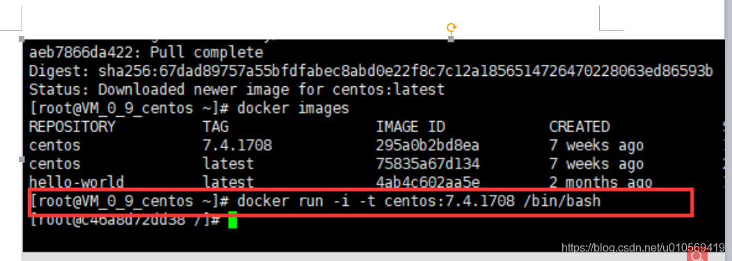 (3)所以正常的应该是执行“docker run -i -t centos:7.4.1708 /bin/bash”