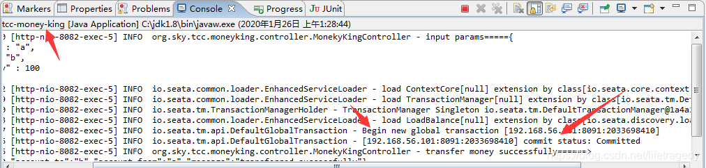 在我们的tcc-money-king中有一个业务方法,在这个业务方法中只需要如此使用@GlobalTransaction申明即可启用seata的tcc机制