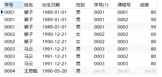- 9.查询学过编号为“0001”的课程并且也学过编号为“0002”的课程的学生的学号、姓名