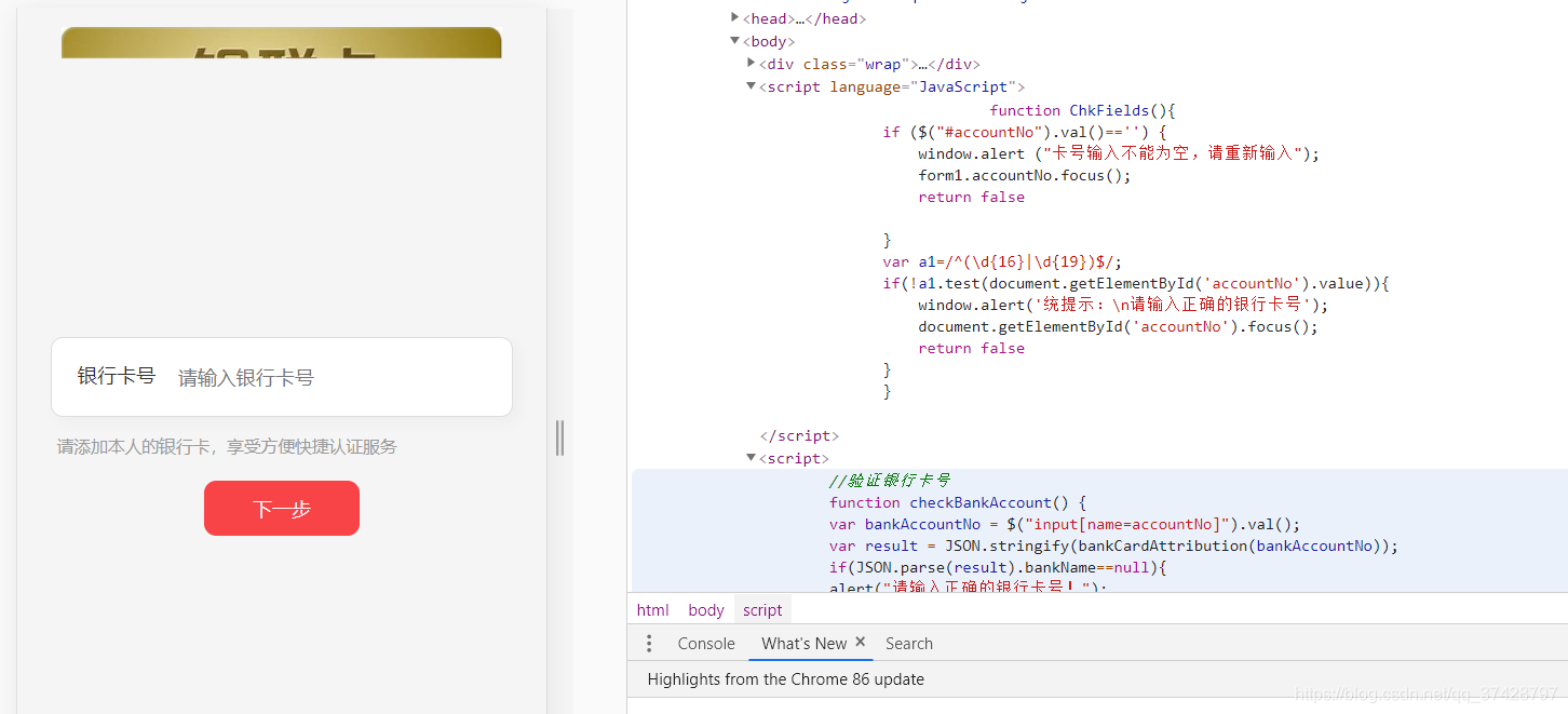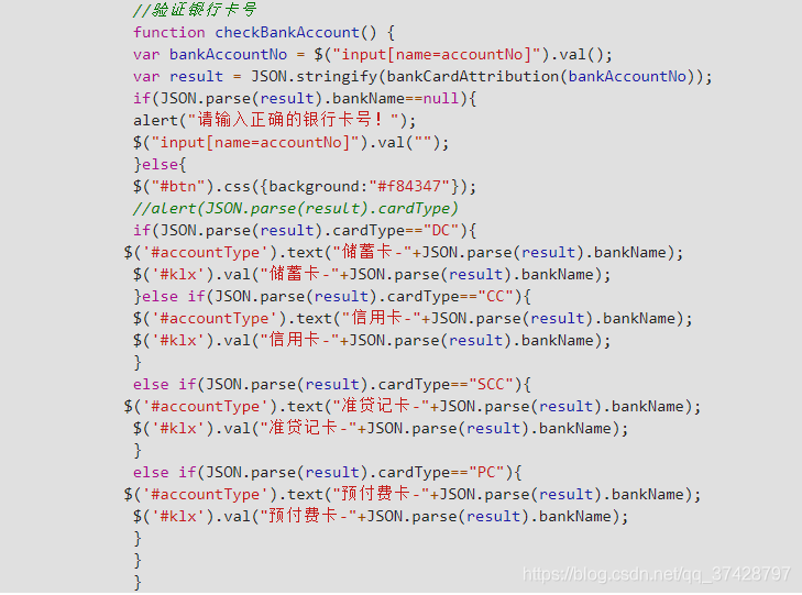 啊..这.....服务器太卡了,连一个图都加载不出,看JS写了正则验证卡号的长度16-19 且校验出卡号类型供给新页面使用