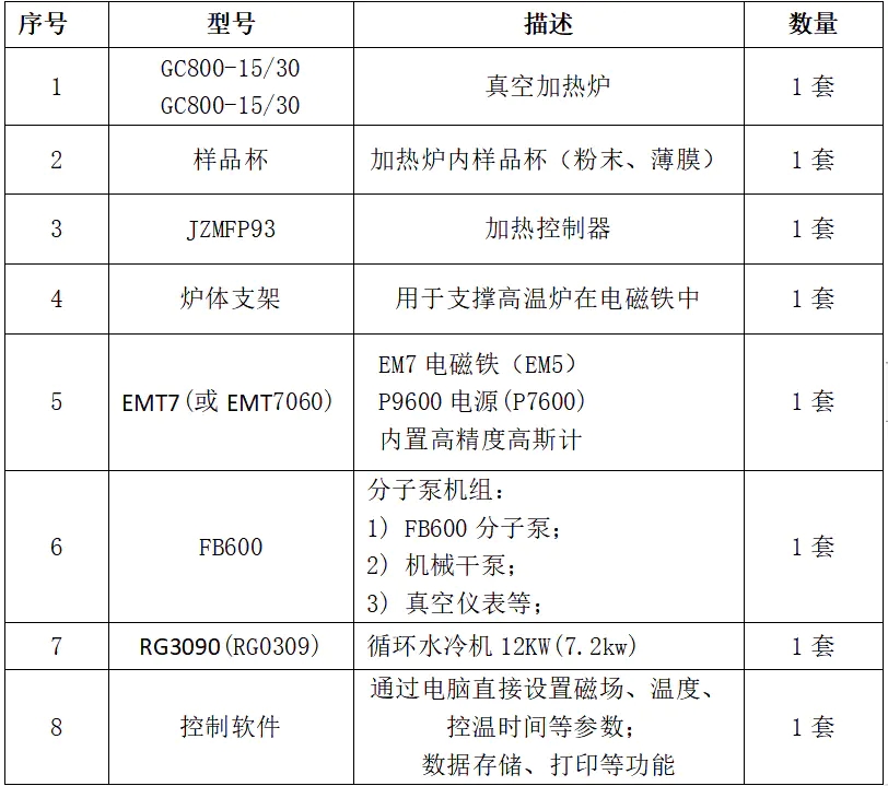 样品环境:高温磁场加热炉可以将被测样品同时置于强磁场、高真空、高温环境中。同时也可以单独或任意组合这三种实验环境,满足不同样品在不同环境下的测试要求。
