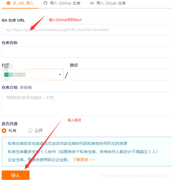 进入码云(注册这个事情略过)点击页面顶部菜单栏,点击➕号,然后点击从GitHub/GitLab导入仓库。