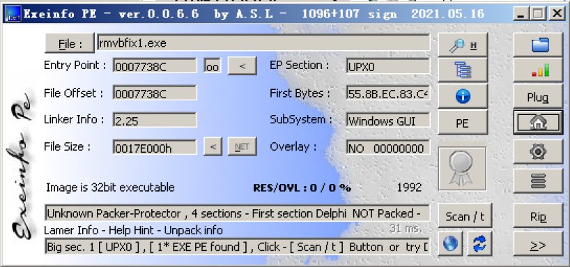 - exeinfope(可使用其他类似查壳工具)