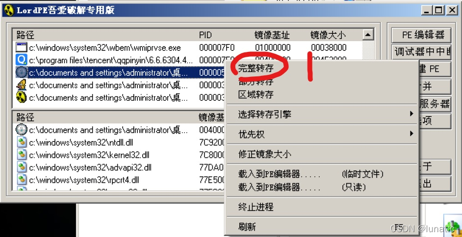 在确认OEP的位置后,、也可以使用LordPE完整转存,然后再使用ImportREC修正