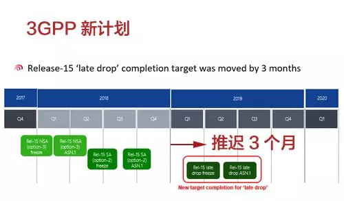 对于3GPP为何要推迟5G标准,有说法表示,是为了预留更多的时间确保3GPP各种工作组之间充分协调,以及保证网络与终端、芯片之间更完善的兼容性等。