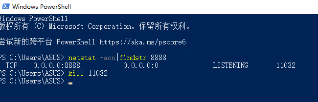 组合快捷键win+R打开命令行,并输入powershell命令(可以直接杀死占用的端口号)