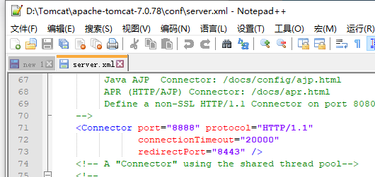 不过既然说在同一时间8888的端口号存在和其他软件的使用冲突,那我们先修改Tomcat的端口号,再找到与其冲突的那个应用,将其端口号释放。