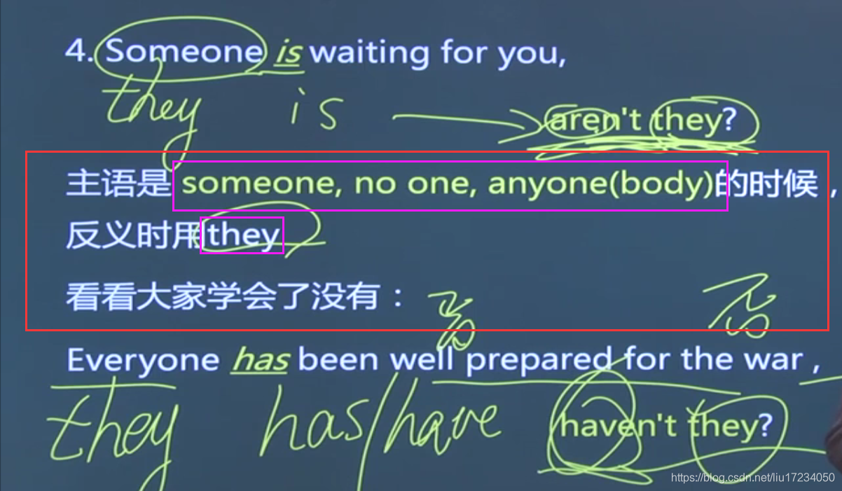 4.不定代词指人用they