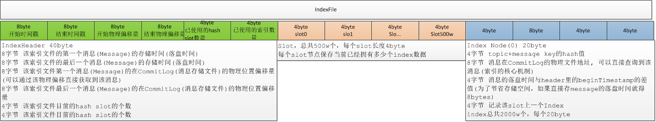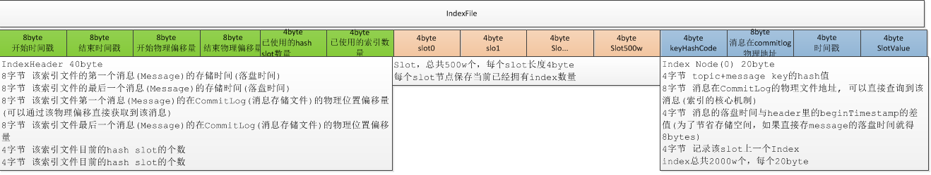 public void load() {this.beginTimestamp.set(byteBuffer.getLong(beginTimestampIndex));//获取indexfile的前8字节,即起始时间戳this.endTimestamp.set(byteBuffer.getLong(endTimestampIndex));//结束时间戳 8字节this.beginPhyOffset.set(byteBuffer.getLong(beginPhyoffsetIndex));//在commitlog的起始offset 8字节this.endPhyOffset.set(byteBuffer.getLong(endPhyoffsetIndex));//在commitlog的结束offset 8字节this.hashSlotCount.set(byteBuffer.getInt(hashSlotcountIndex));//已占用的slot数量 4字节this.indexCount.set(byteBuffer.getInt(indexCountIndex));//已经使用的index数量 4字节if (this.indexCount.get() <= 0) {this.indexCount.set(1);}