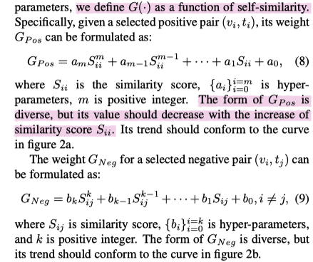 rule:随着正样本对的相似度增加,所对应的权值应该减小,随着负样本对的相似度增加,所对应的权值应该增大