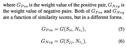 我觉得其中的含义就是,当负样本与Anchor的相似度越大,惩罚的力度也应该更大,所以赋予其更大的权值,当正样本与Anchor的相似度增加,说明很容易就能判别出来,所以不需要过多关注
