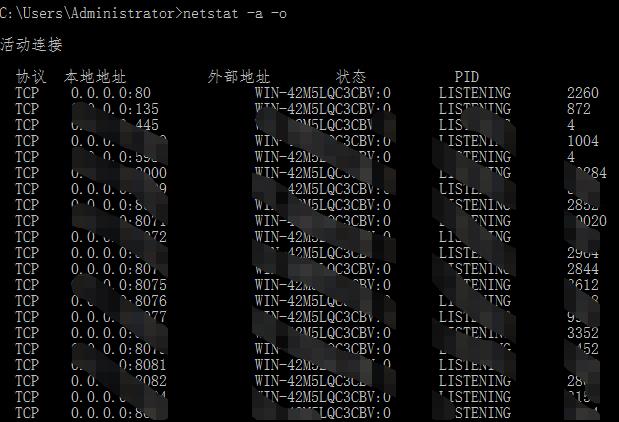 cmd打开命令行窗口,输入:netstat -a -o