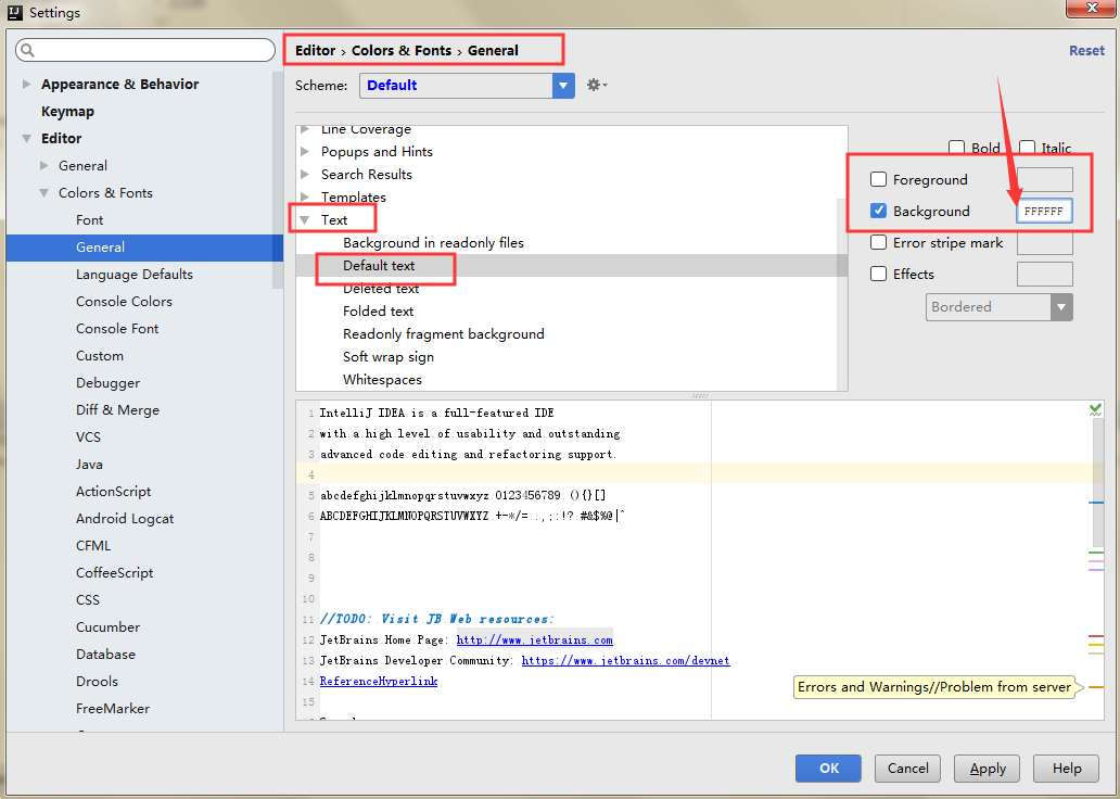 2、Editor-Colors&Fonts-General(idea不同版本,General路径不同,可以搜索colors找找看)