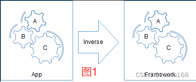 IOC:控制反转(Inverse of Control),控制--什么的控制?笔者认为是业务流程的控制,反转(倒置)又是什么意思?笔者认为这就是将我们自己写的应用程序中的流程控制反转给框架。下面两张图截取自引文1