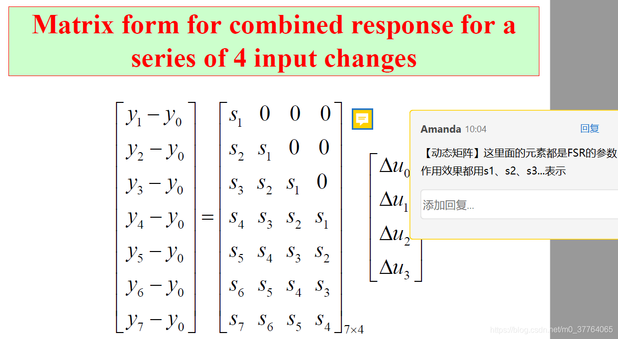 建模时是一次响应,控制时每个采样周期都要有一次Δu的输出,可能上一个控制作用的输出还没出来,下一次输入又加上了,因此输出往往是连续的,是输出的线性叠加。