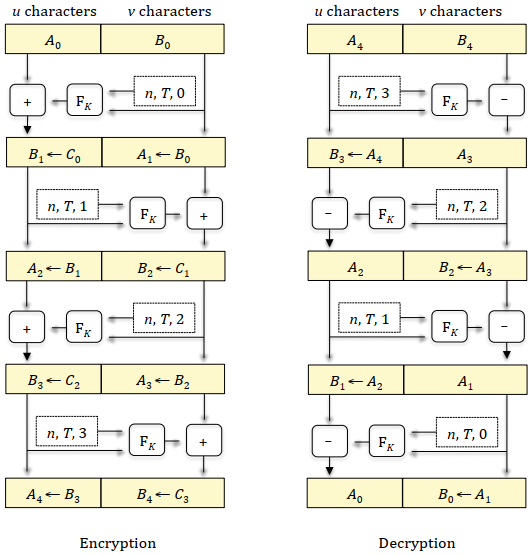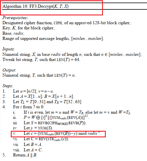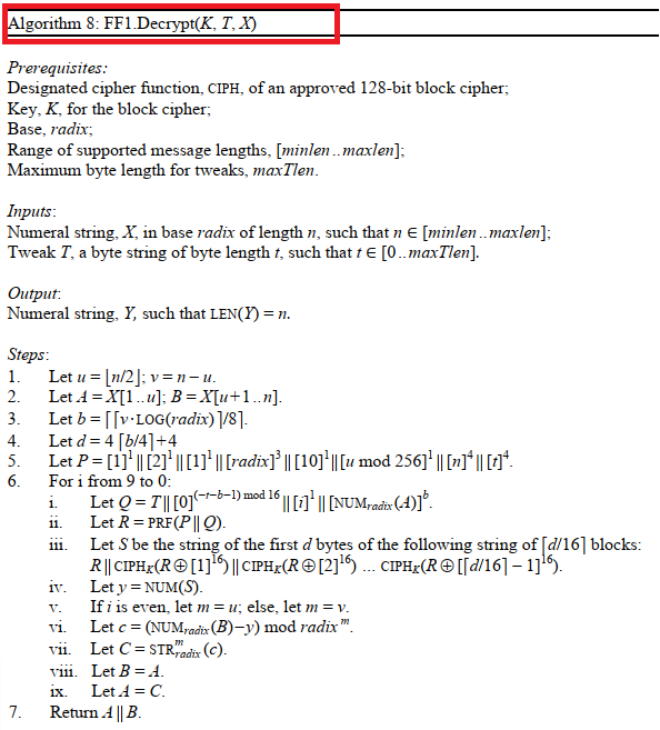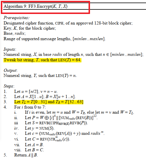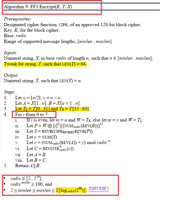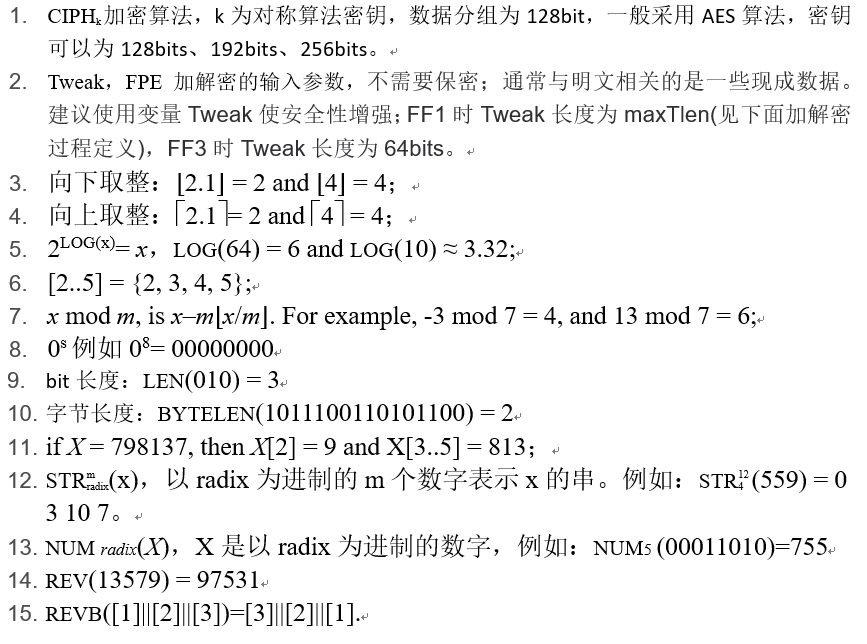 以上内容参考《NIST Special Publication 800-38G Recommendation for Block CipherModes of Operation:Methods for Format-Preserving Encryption》