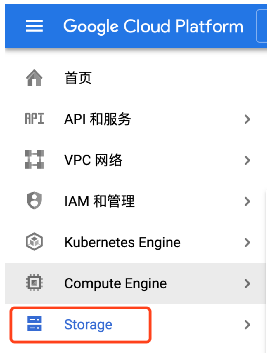 1. 进入 Google Cloud 控制台(https://console.cloud.google.com/) ,在左边侧栏选择 Storage。