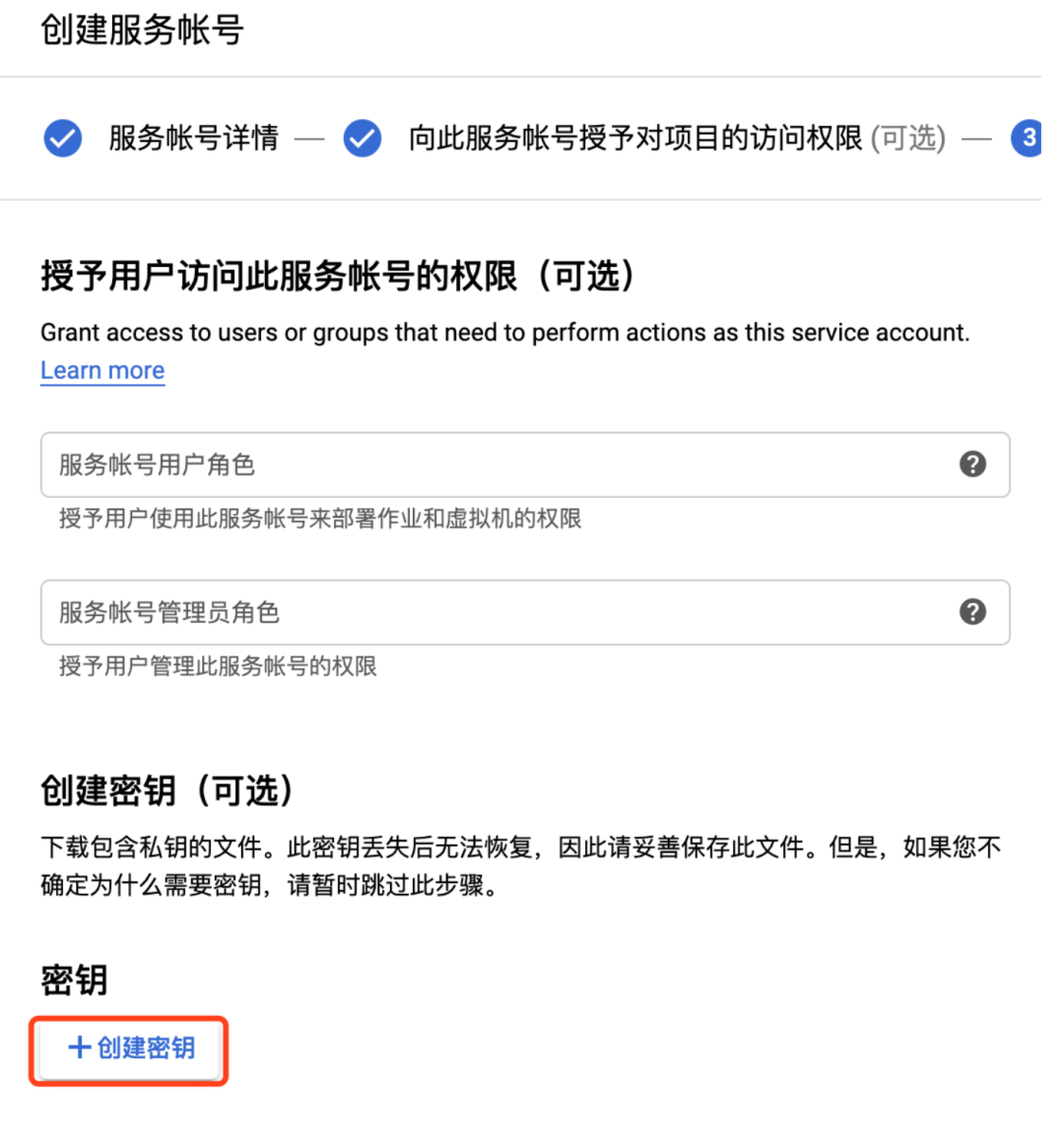 6. 点击创建密钥。