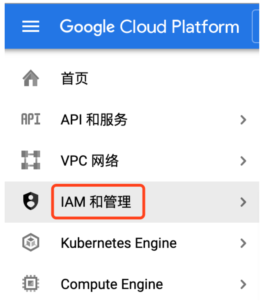 1. 进入 Google Cloud 控制台 ,在左边侧栏选择 IAM 和管理。