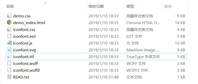 该方案同样适用于字体变更。从iconfont库下载好图标脚本,结构如下: