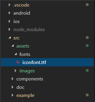 在app根目录中创建新目录src/assets/fonts用来存放字体文件,将 iconfont.ttf 拷贝到该目录下
