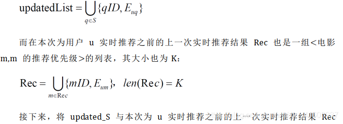具体来说:首先,获取用户 u 按时间顺序最近的 K 个评分,记为 RK;获取电影 p 的最相似的 K 个电影集合,记为 S;然后,对于每个电影 q S ,计算其推荐优先级 , 计算公式如下: