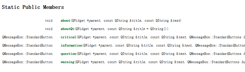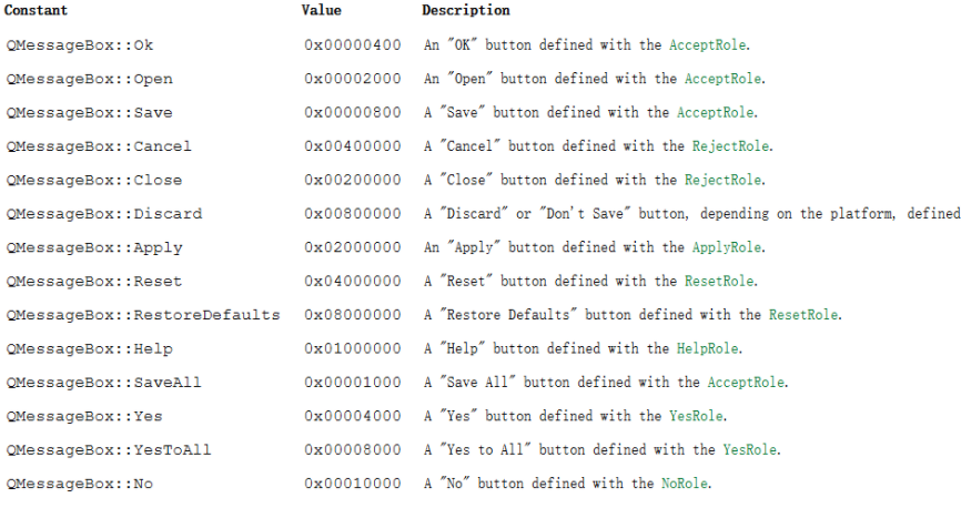 - QMessageBox: 模态对话框,用于显示信息、询问问题等;