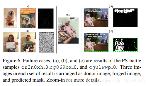 在提出的方法有较好的表现外,说明了方法存在的限制 1)通过电脑合成的图片 2)篡改区域与背景区域具有相同时噪声分别时 3)图片中存在多区域篡改的情况下,需要指定区域的情况下,才能判断出篡改区域