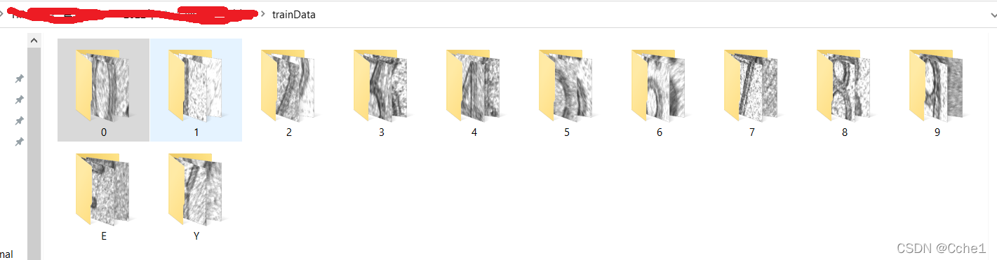 2、使用金舟重命名软件(自选,作者使用的金舟),对样本图像集进行批量重命名(不修改图像后缀)。我的样本如下图所示,trainData下面有12个以字符名命名的文件夹,每个字符文件夹里面又以对应字符开头命名。