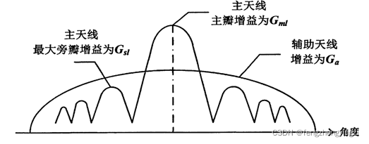 雷达发展的最开始阶段,人们发现,机载雷达回波信号中除了空中目标以外,还会有很多地面的强目标回波产生的杂波信号,这会影响到雷达检测目标的能力。因此,为了将从主瓣进入的空中目标回波与从旁瓣进入的强反射地面杂波(建筑物,汽车等等)区分出来,就加了一个辅助通道,并让辅助天线增益略大于天线方向图中所有旁瓣的增益,而远小于主瓣天线的增益。如下图所示: