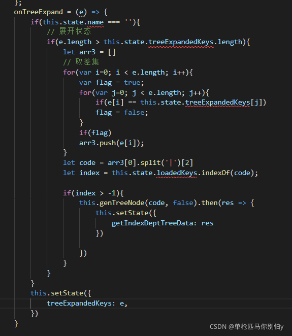 先说下思路,tree插件是有一个loadedKeys属性的,是可以直接进行操作的,TreeSelect插件不支持这个属性,我们需要手写一个,全局设置一个变量,在loadData异步加载的时候,把当前加载的code存起来